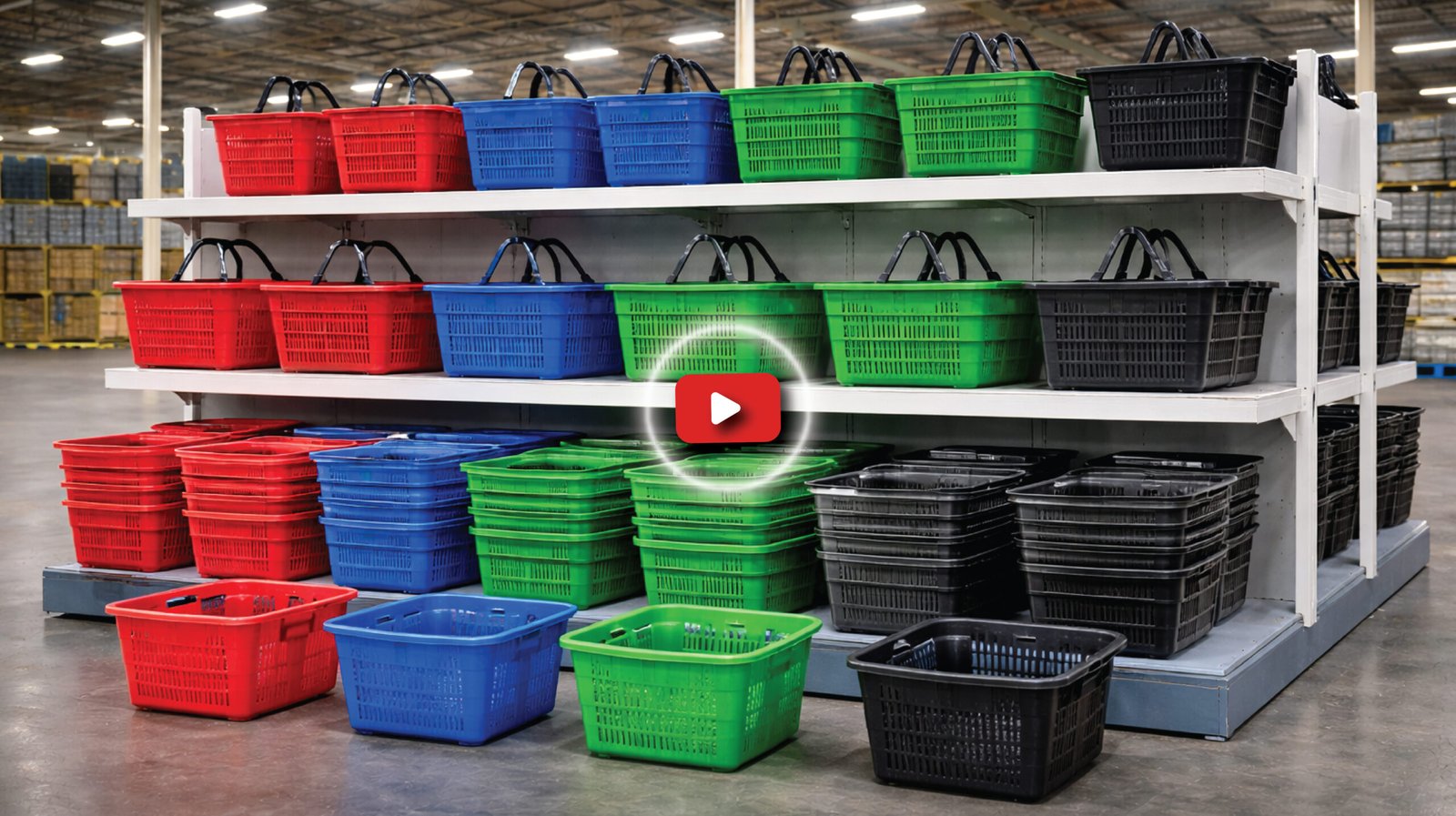 Lightweight and strong shopping baskets designed for easy handling in supermarkets and retail stores.