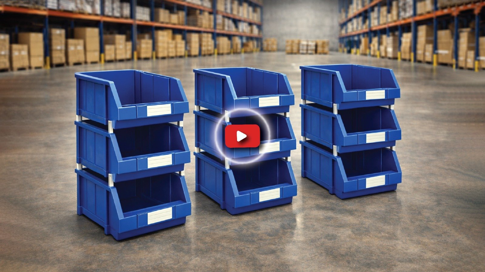 High-quality plastic bins suitable for organized storage, stacking, and industrial or commercial use.